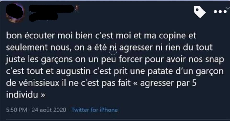 Augustin, 17 ans, aurait été passé à tabac par un groupe de « racailles », alors qu’il venait en aide à des jeunes femmes harcelées.