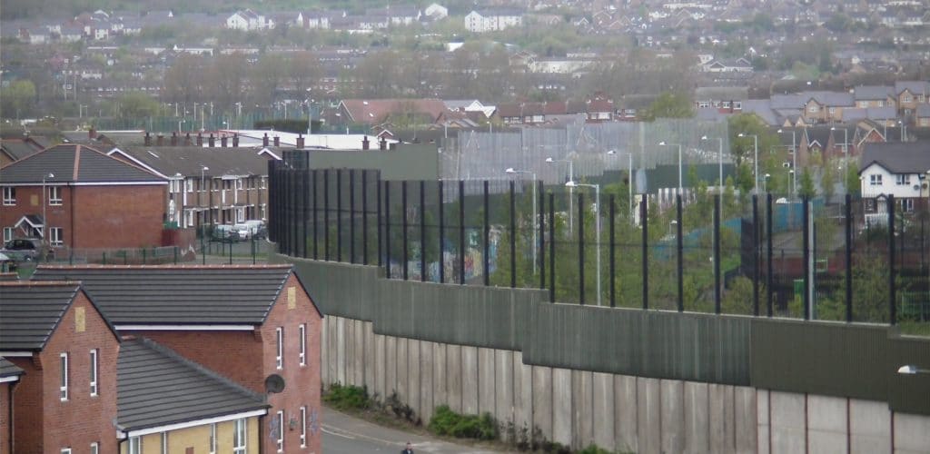 Les Peace Walls, murailles établies après la fin des Troubles pour « empêcher les affrontements », emblématiques de la ségrégation en Irlande du Nord.